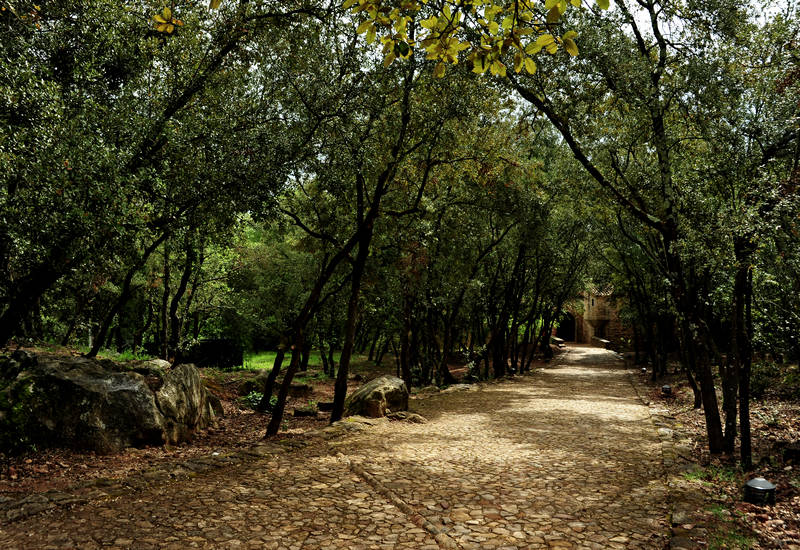L'abbazia si trova in una valletta molto isolata e solitaria, tra boschi e vigneti,