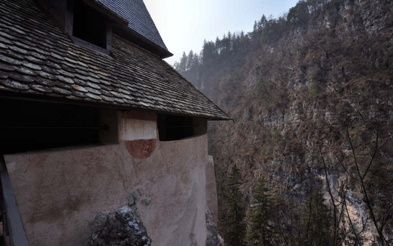 Dietro la chiesetta primitiva un balcone coperto permette l'affaciarsi sul vertiginoso abisso della gola.